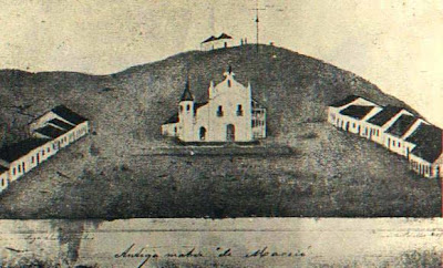 Do lado esquerdo o prédio onde atualmente funciona o ministério da Fazenda, em frente a ladeira que dá acesso ao farol ao lado da catedral de Maceió, e acima prédio do colégio Guido